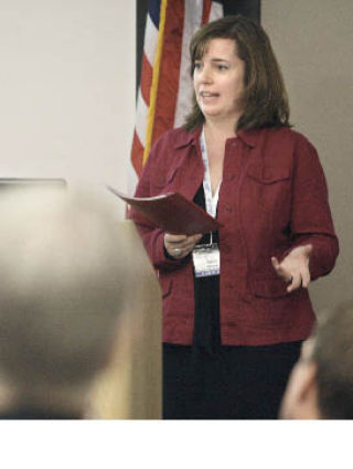 Katherine Ganter/Reporter Newspapers Julie Metteer of the Kirkland Downtown Association gave a presentation during the event at Lake Washington Technical College on May 8.