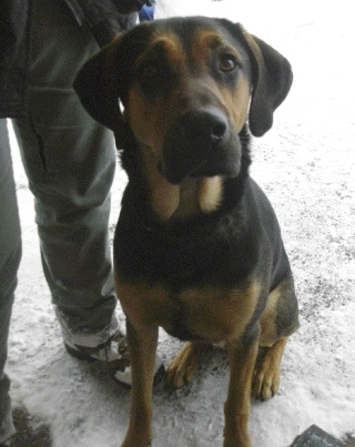The black and tan neutered male hound or hound-mix, which weighs around 70 to 75 pounds and is estimated to be about a year old, is reportedly very friendly but somewhat shy. The Bakers first noticed the hound or hound mix breed around 6 p.m. near the intersection of 102nd Avenue and 116th Street. Their golden retriever had run over to play with him in the freshly-fallen snow.