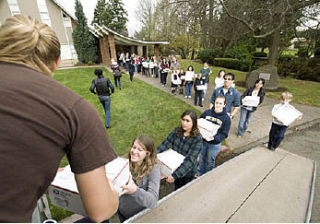 Students and other volunteers gathered throughout the day on Nov. 21, to pack boxes.