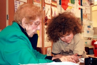 “Grandma Bertha,” as she’s affectionately known by children in the classroom, helps full-day kindergarten teacher Julie Bebee around the classroom four times a week. Some of duties Fitzgerald, 86, carries out include keeping the children on task with their writing and drawing assignments, files their school work and lesson plans and keeps the teacher supplied with the various materials she needs throughout the day. But beyond that, she simply enjoys her time spent surrounded by the children.