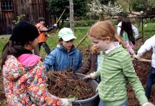 Clearing off leaves and pine needles from a nearby flower bed, fifth-grader Sofia Ackerman seemed to be enjoying the mix of play and work.