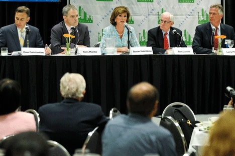 Each of the five contestants – County Councilmember Dow Constantine, state Rep. Ross Hunter of Medina, former news anchor Susan Hutchison, state Sen. Fred Jarrett of Mercer Island, and County Councilmember Larry Phillips – promised to make the government more accountable and reduce its ballooning deficits.