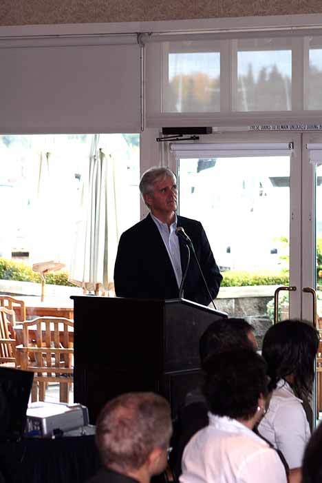 Clearwire CEO Bill Morrow speaks during the Kirkland Chamber of Commerce luncheon at the Woodmark Hotel. Among those in attendance were local business owners