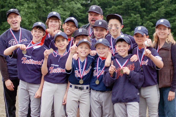The Kirkland National Tigers beat Kirkland American Yankees 4-3 in eight innings on June 15 to become the City Champs. Players include: Bridger Bartch