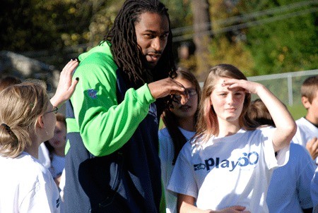 Seattle Seahawk Isaiah Stanback came to Peter Kirk Elementary to speak with 5th and 6th graders about getting 60 minutes of exercise each day - Play60.