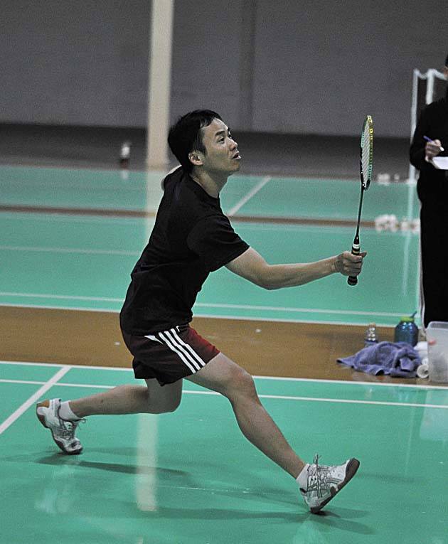Kevin Yu of Seattle gets close to the net during a game of badminton at the Seattle Badminton Club's newest location in Kirkland.