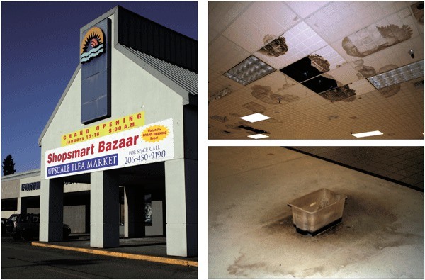 The ShopSmart Bazaar opened on January 15 but a dispute over rent has forced the business to close. The bazaar's owners claim that they spent thousands of dollars to clean up the space that had damage from a roof leak as seen in the photos at right.
