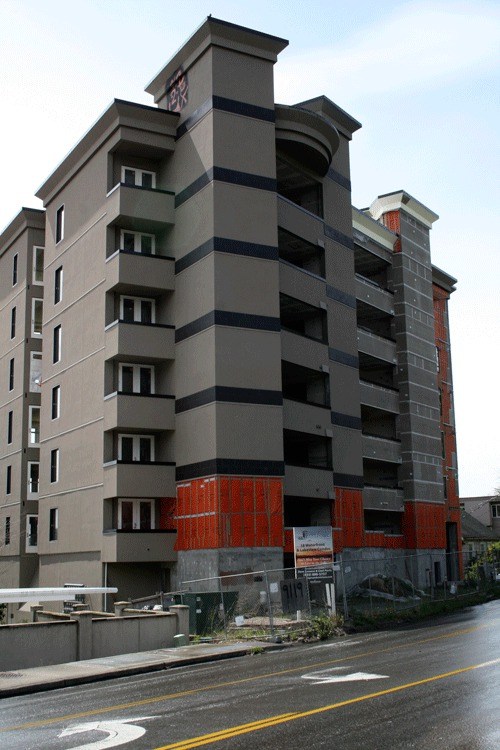 The Bel Lago Condominium sits on the banks of Lake Washington and is the fourth tallest building in Kirkland. The building was foreclosed on in December and has not been completed.