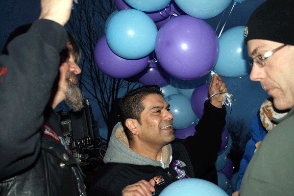 More than 60 people endured the wind and rain to attend the candle-light vigil and balloon release for Sky Metalwala.