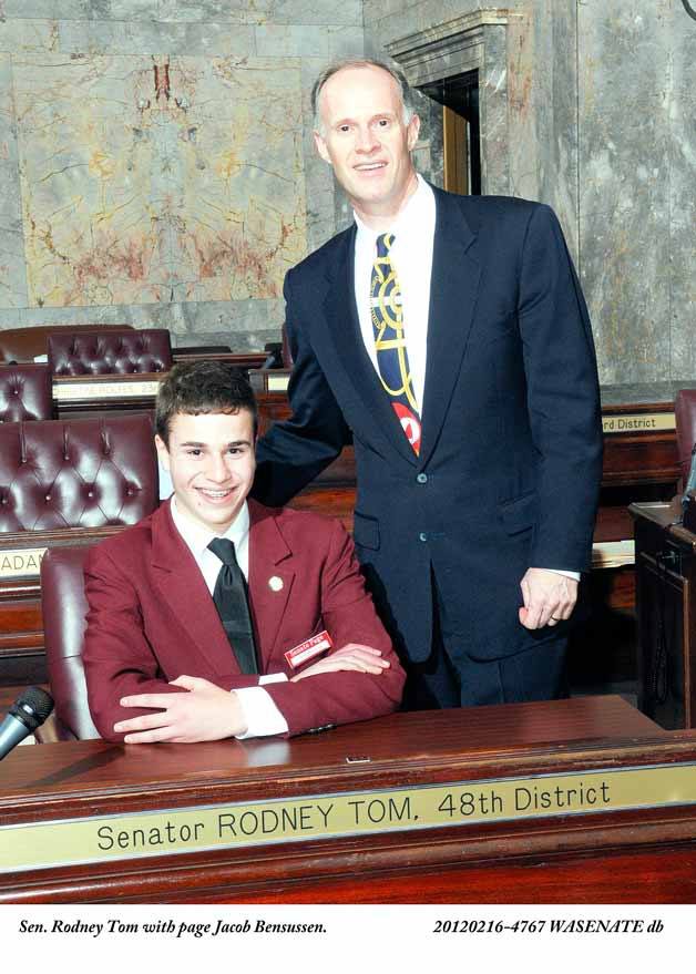 Bensussen was sponsored by Sen. Rodney Tom from the 48th Legislative District. “The page program offers a fantastic and rare firsthand opportunity to learn about state government,” said Tom. “I am glad Jake was able to take advantage of it.”