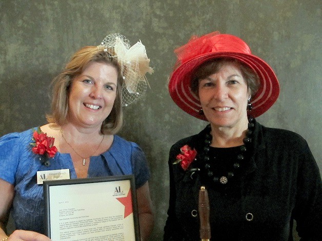 Operation School Bell Committee chairman Mavis Goetsch presented the National Operation School Bell Award to Eastside Community Aid Thrift Shop President, Jody Orbits. Since 1993, Eastside Community Aid Thrift Shop has donated over $83,000 to the chapter in 29 separate gifts.