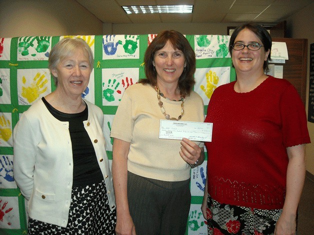 Ann Levine, executive director of Imagine Housing, presented the check to Barbara Thompson, executive director of NAMI Eastside at Imagine Housing in Kirkland.