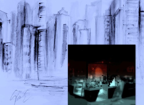 In her book, Glazière says the lounge décor at Urban Coffee Lounge in Juanita Village is “quite stylish with many eclectic contemporary design features – the woodwork, a sculptural coffee counter-display case, atmospheric lighting, and of course, the mesmerizing fireplace.”