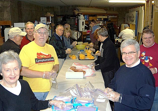 Kiwanis Club of Kirkland members pack sack lunches for hundreds of special kids for the Special Olympics King County 2013 Regional basketball tournament held in Issaquah on Feb. 10.
