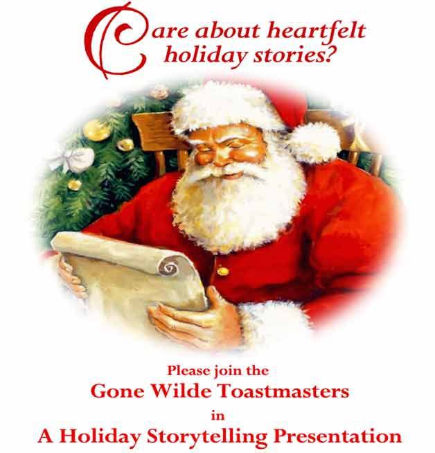 The club will be sharing personal stories from their experience with this wonderful time of the year. The performance is free and open to the public. Space is limited to approximately 50 attendees. Admittance is first come first seated.