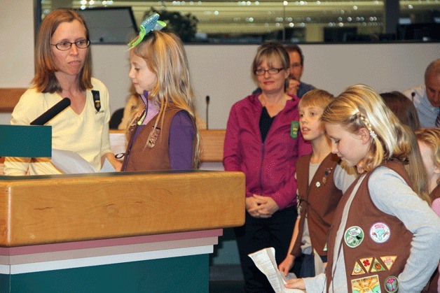 Kirkland Brownie Troop 40451 attended the Kirkland City Council meeting on April 1. They group earned their Hiker Badge by walking the Cross Kirkland Corridor. They also addressed the Council about trash they observed on the Corridor during their hike and announced they would be hosting a clean up event from 9:30-11:30 a.m. on April 27 on the Corridor.