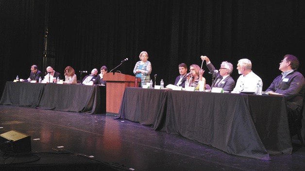 Panelists Eric Shields, the city’s planning director, Rick Lerz with Kirkland-based Nytec, Nancy Hamilton with EvergreenHealth Medical Center, Doug Davis with Hallmark Realty, and Arthur Sullivan with ARCH (A Regional Coalition for Housing) described the housing dilemma for citizens in Kirkland.