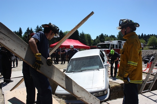 It was while parts of the Microsoft Corp. campus in Redmond were still being constructed and Sanderson was one of the firefighters to dig the construction worker out of the hole. He said this particular rescue was actually an excavation, meaning the hole is wider than it is deep (a trench is the opposite), but the techniques are similar to those for a trench rescue.