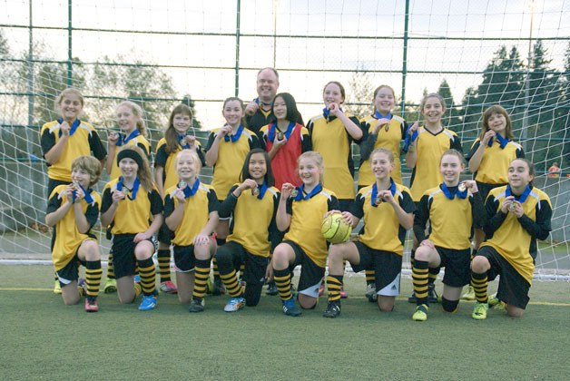 The Juanita Bumblebees, a U-12 girls soccer team in the Lake Washington Youth Soccer Association, won their year-end tournament championship with a 1-0 victory against another Kirkland team, the Juanita Rebels, Nov. 8 at Marymoor Park.