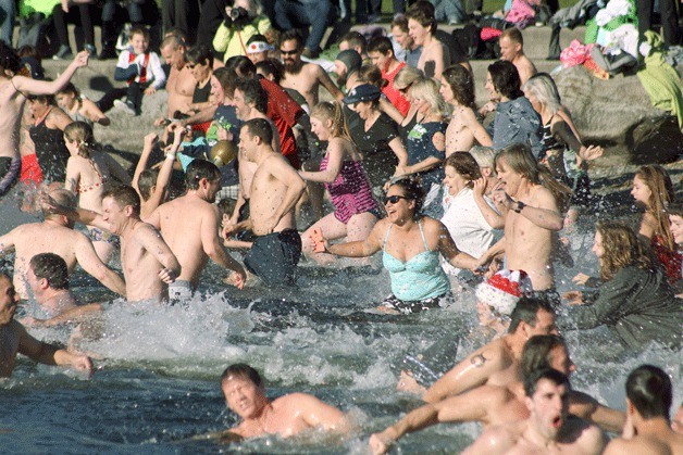 Screams of glee and shock could be heard all through Marina Park in downtown Kirkland at 1 p.m. on New Year’s Day, as hundreds of people from around the Puget Sound area participated in the annual Kirkland Polar Plunge.
