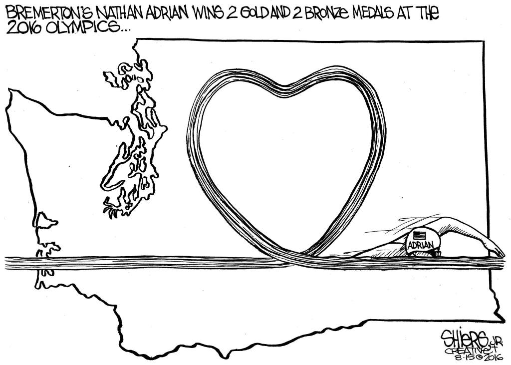Washington’s Nathan Adrian wins two gold, two silver | Cartoon for Aug. 15 – Frank Shiers