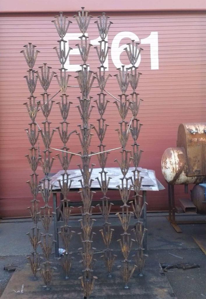 In the final product, which Dicks created with help from an assistant, fellow LWTech student Riley Schroeder, people see upside down people, hands and tree branches crafted from the repeated connection of five different spikes. The tallest “branches” of the sculpture reach eight feet, and Dicks estimates the sculpture weighs between 400 and 500 lbs.