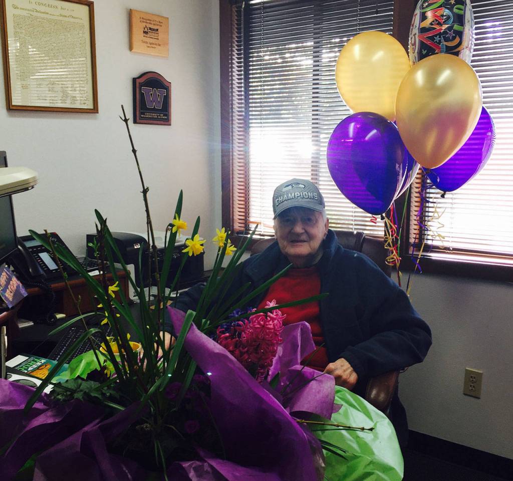 Russ Parthemer, who started his Kirkland insurance agency more than 40 years ago, recently celebrated his 90th birthday alongside his sons Eric and Craig at Totem Agencies’ Kirkland office.