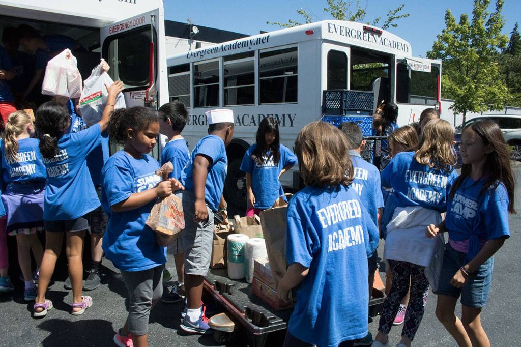 On Friday, students from Evergreen Academy Elementary School’s summer camp program donated 259 pounds of non-perishable food and other items to the Hopelink location in Kirkland.