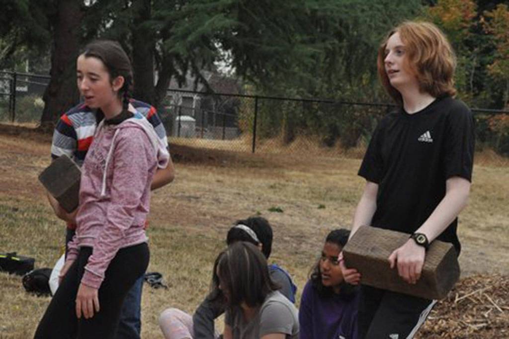 The summit started with a community project, with freshmen and sophomores being bused to North Rose Hill Woodlands Park. Members of the Green Kirkland Partnership instructed them how to pull weeds and help to restore some park plants. Juniors and seniors took off for Finn Hill Park with members of the King County Department of Natural Resources and Parks to help with restoration. They filled two dump trucks full of weedy material, removing about 10 cubic yards of invasive plant species from the park from a work area of about 6,000 square feet.