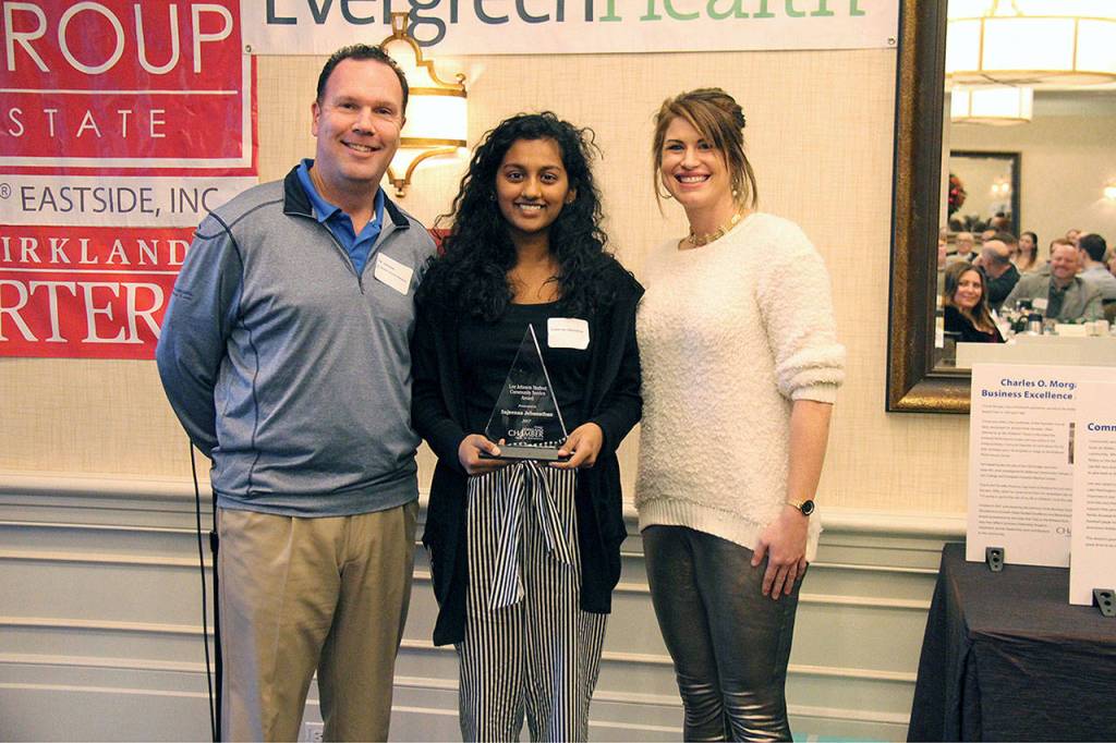 Sajeenaa Jebanathan a Lake Washington High School student won the Lee Johnson Student Community Service Award. The award comes with a $1,000 scholarship that Sajeenaa can use at whatever institution she attends after high school and a $1,000 additional donation to the Lake Washington Schools Foundation made in Sajeenaa’s name.