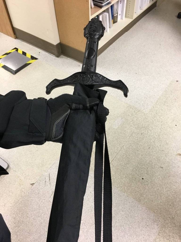 The employee then contacted police and officers confirmed that the suspected rifle was simply an ornate umbrella with a sword hilt handle.