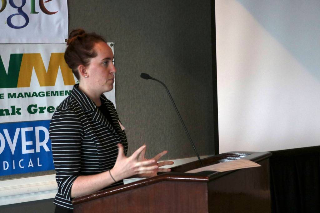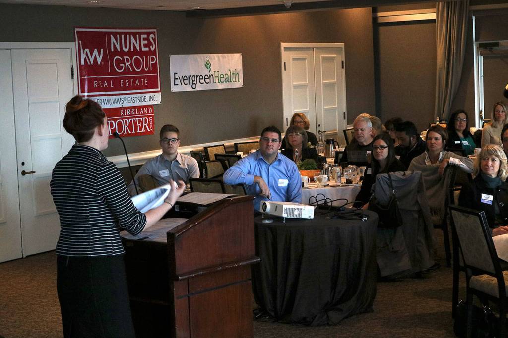 Ellie Bachaud from Stratocent Technologies educates the Greater Kirkland Chamber of Commerce on how to keep their businesses safe from cyber-attacks. <em>Kailan Manandic, Kirkland Reporter</em>