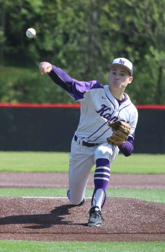 Lake Washington hurler Oliver Laufman delivers a pitch in the fifth inning during his no-hit performance on Saturday. Andy Nystrom / staff photo