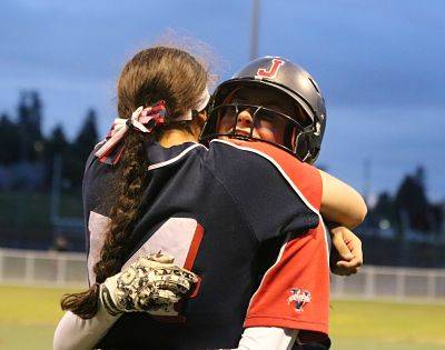 As if the Juanita players weren’t loud enough while cheering in the dugout, their jubilant screams pierced the night sky several levels higher after Megan Murray did her job. Her two-out hit drove in Lauren Moreau from second in the bottom of the seventh inning to give the Rebels a 5-4 win over West Seattle and a return trip to state.