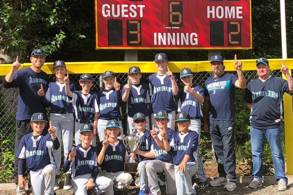 The Kirkland American Little League Mariners beat the Kirkland National Little League Diamondbacks, 3-2, on June 8 in the majors division city championship game. The Mariners are: back row (left to right) — Manager Casey Calkin, Carter Calkin, Lochlan Senecal, Levi Marshall, Logan Norris, Reilly Jones, Aiden Gilbert, coach Doug Norris and coach Rich Senecal; front row (left to right) — Dallas Norris, Hunter Hinzman, Aiden Mehlberg, Tyler Scalese, Shane Johnson and Jinwoo Chang. Logan Norris homered and had two RBIs, Calkin had a hit and one RBI and Dallas Norris had a hit. The game was a pitchers’ duel with both teams’ pitchers throwing well. For the Mariners, Logan Norris and Calkin combined for 11 strikeouts. Courtesy photo