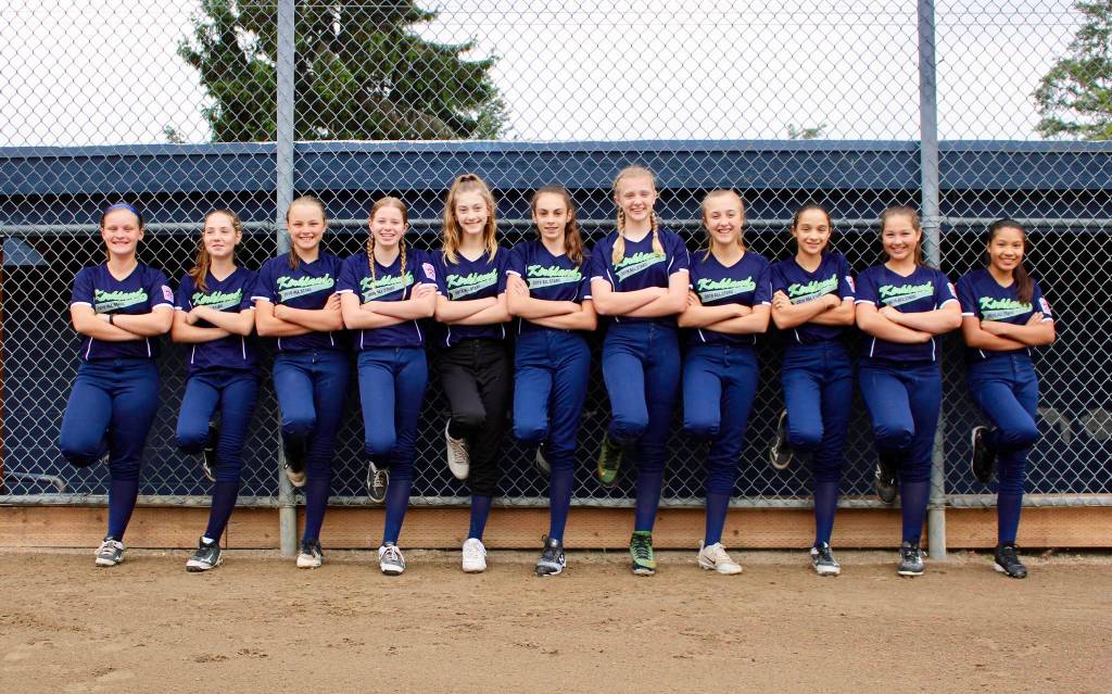 Kirkland’s majors softball all-star team won its third consecutive District 9 title last Saturday, defeating Redmond, 10-0. Kya Aldrich pitched five shutout innings and gave up just one hit and struck out 11. Ashlyn Cook went 3-for-4 with four RBIs to lead Kirkland. Kirkland outscored its opponents 54-3 in this year’s district tournament with solid pitching by Aldrich and Christina Minor. Kirkland’s team batting average was .545, led by Bella Ely, Cook, Hailey Story and Aldrich. The team begins the state tournament June 30 in Vancouver. The team is, from left to right: Hailey Story, Christina Minor, Bella Ely, Emily Nielsen, Mary Madaline Roe, Zoe Tarrach, Kya Aldrich, Emma Pascal, Kaidence Caiola, Ashlyn Cook and Erin McKeag. Courtesy photo