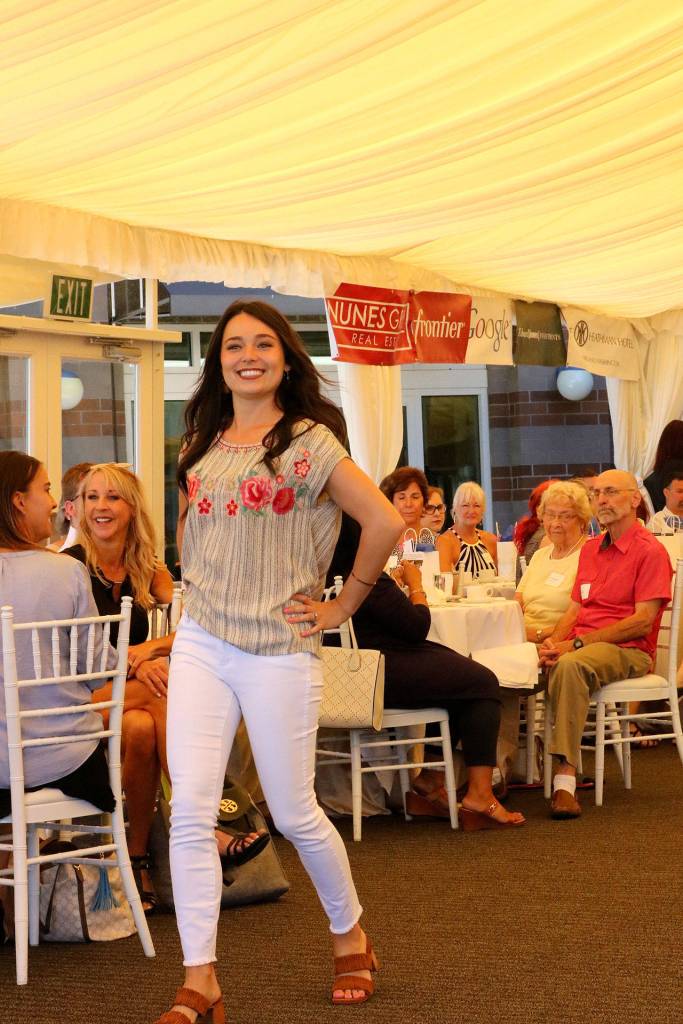 The fashion show consisted of local boutiques Via Lago, Purpose, Essentials on Park Lane, Seattle Thread, Everyday Athlete, Goodwill and Mermaid Hair Extensions. The models, all of which were staff members on the chamber of commerce, took their turns down center aisle dressed to impress. Each model showcased their summer-friendly outfits to those in attendance.