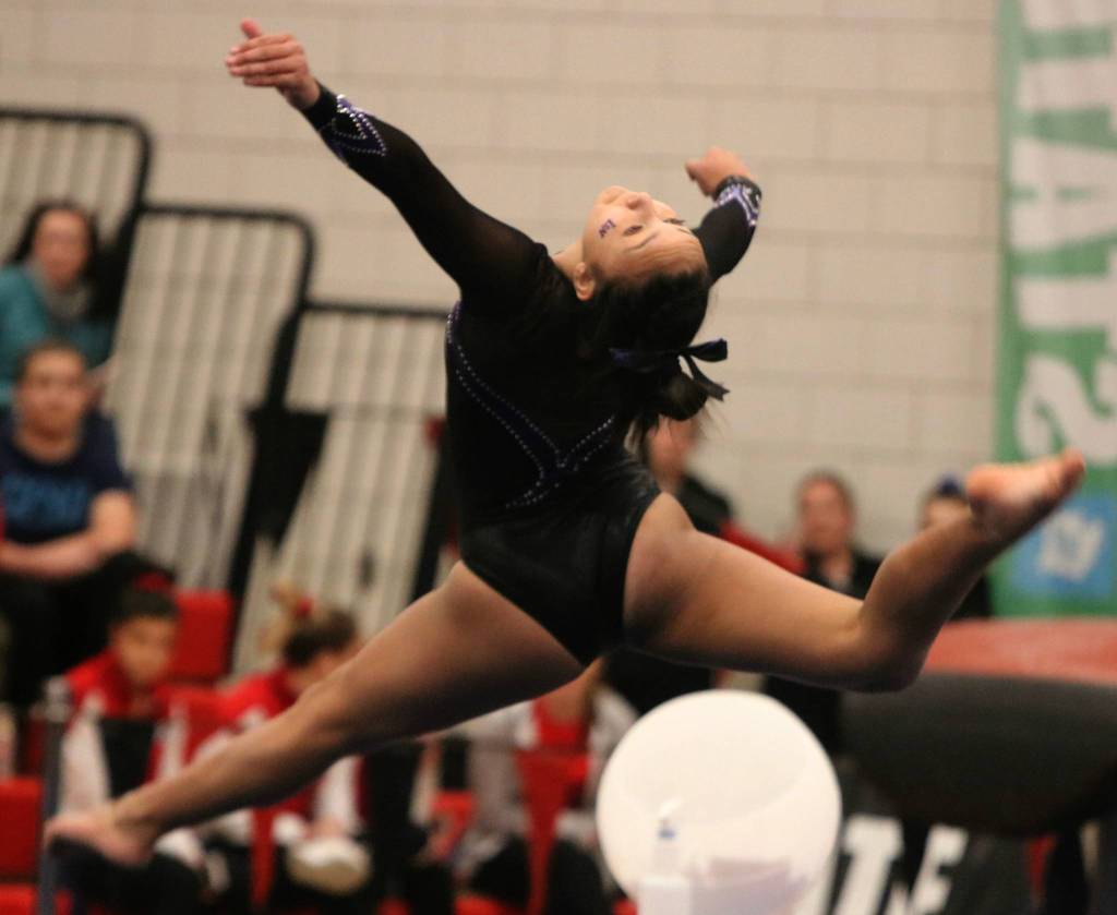 At the 1A/2A/3A championships on Feb. 21 at Sammamish High, Holy Names Academy took first with 181.325 points and the Kangs followed with 180.275 points. Noriega took sixth in the all around with 37.375 points and Juanita’s Allison Lofquist placed eighth with a 37.100.