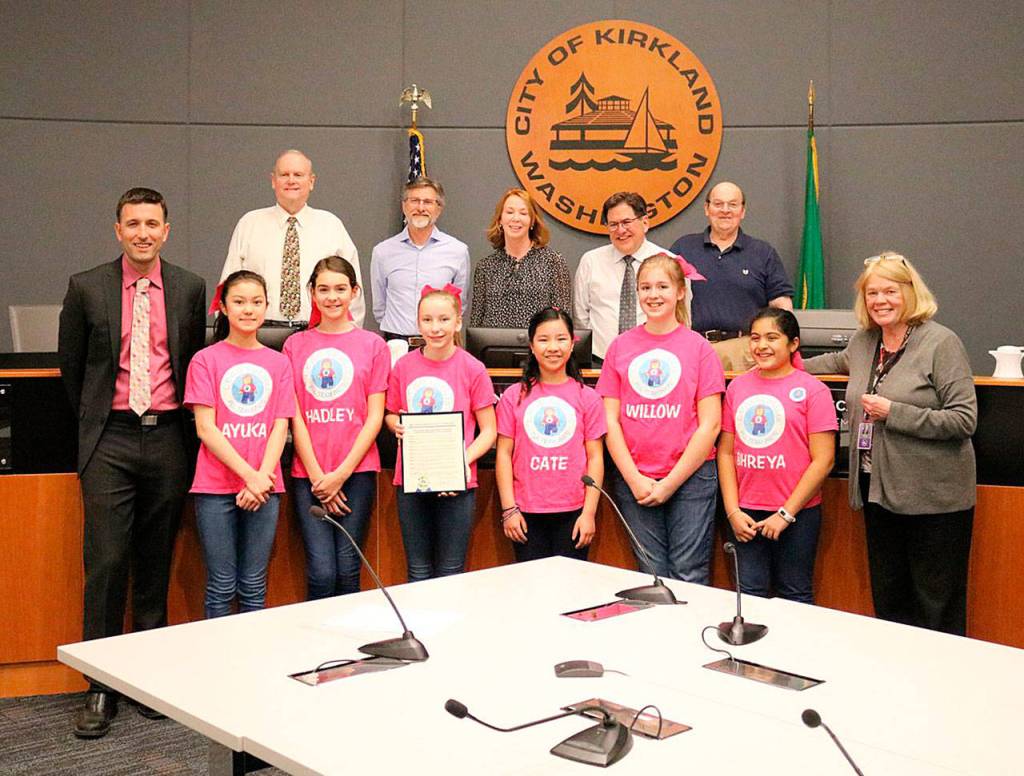 The Kirkland City Council designated April to the LEGO Lassies at its April 2 meeting.