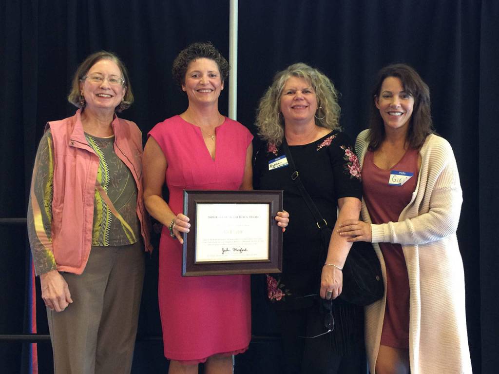 From left: Jane Scott, Dee Roe, Andrea Liggett (the 2008 Award Recipient), Gina Casanova pose for a picture at the award ceremony. Photo courtesy of St. Vincent de Paul