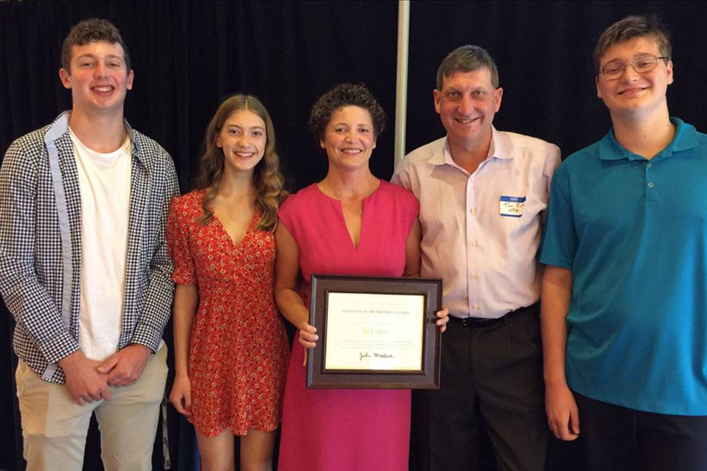 From left: Philip, Mary Madaline, Dee, Tom and Thomas Roe pose together at the award ceremony. Photo courtesy of St. Vincent de Paul