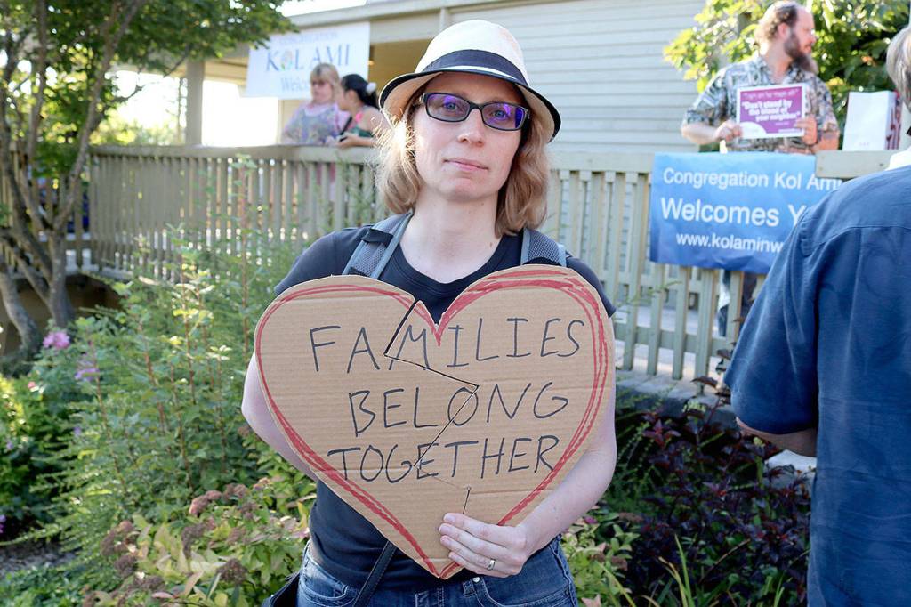 Elizabeth Standal, a Kirkland resident holding a broken heart poster that stated “Families Belong Together” was present at the vigil and ready to stand against the inhumane treatment of migrants and refugees.