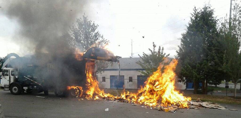 In fact, a fire broke out in the back of a Waste Management truck in a commercial area in the Puget Sound region in July. Someone had tossed flammable materials into a garbage dumpster. The driver did exactly as he was trained: he pulled over, dumped his load, and worked with firefighters to put out the fire. As a result, no one was injured and there was no damage to local businesses.