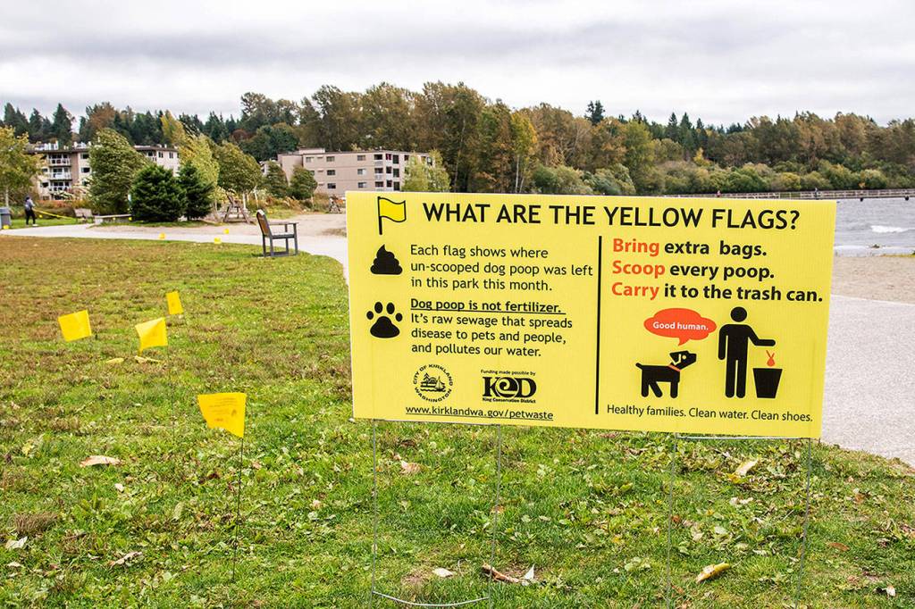 Yellow flags draw attention to poop problems in Kirkland parks