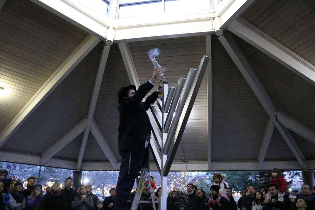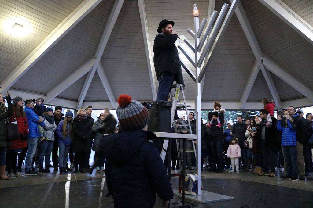 More than 300 people joined Chabad of Kirkland Jewish Community on Dec. 22 for the lighting of a public, nine-foot menorah at Marina Park to mark the beginning of Hanukkah. The lighting was followed by a community-wide celebration.