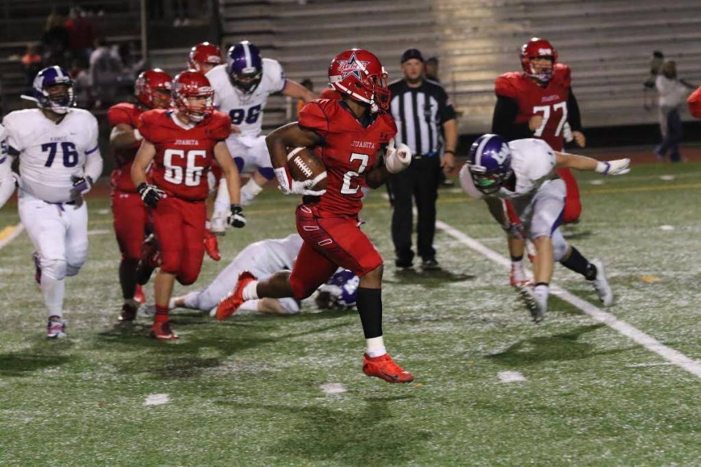 At Juanita, he played in the U.S. Army All-American Bowl following his senior season, during which he was named to the USA Today all-state team at defensive back. That year, he was named the 3A KingCo offensive most valuable player, playing in just six games due to an injury and rushing for 1,300 yards and 13 touchdowns. As a junior, he helped lead the Rebels to a 9-3 record and berth in the 3A state quarterfinals.