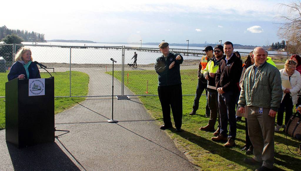 A groundbreaking ceremony was held at Juanita Beach Park on Jan. 27 to commemorate the upcoming construction work at the site.
