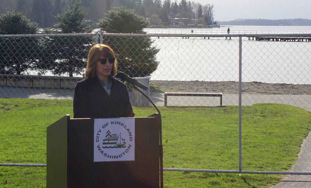 “Juanita Beach Park is one of our most-used parks in Kirkland,” Mayor Penny Sweet said at the event. “It provides everyone access to beautiful Lake Washington and an opportunity to appreciate nature, to enjoy the cool water on a warm day, to play volleyball, to take a stroll or buy fresh fruit and veggies at the Friday market.”