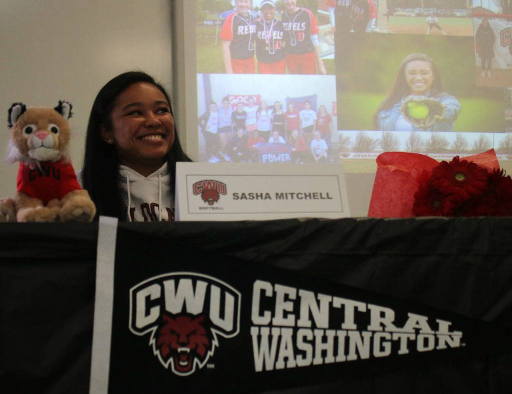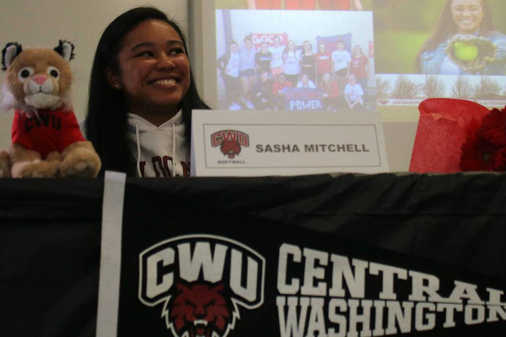 That was the celebratory scene on Feb. 19 in Odegard’s packed portable classroom — filled with family, friends and teammates — as Mitchell signed her national letter of intent to attend Central Washington University on a full scholarship.