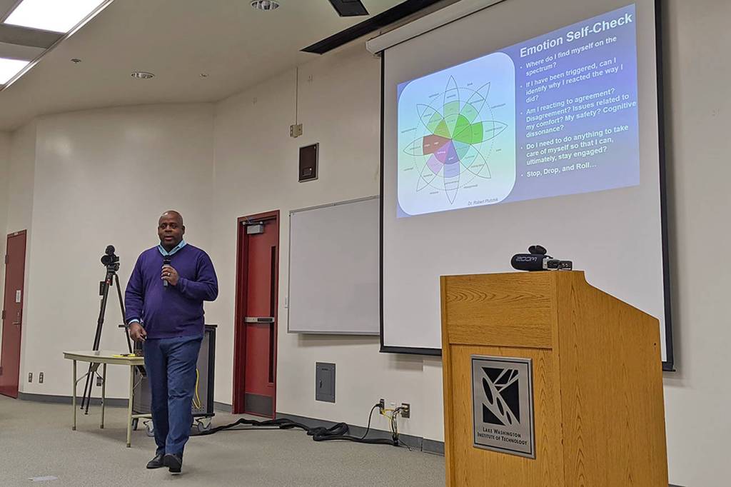 LE president James Whitfield kicked off the event with a presentation on the history of being a person of color in the Pacific Northwest, which he defined as a “white space.”